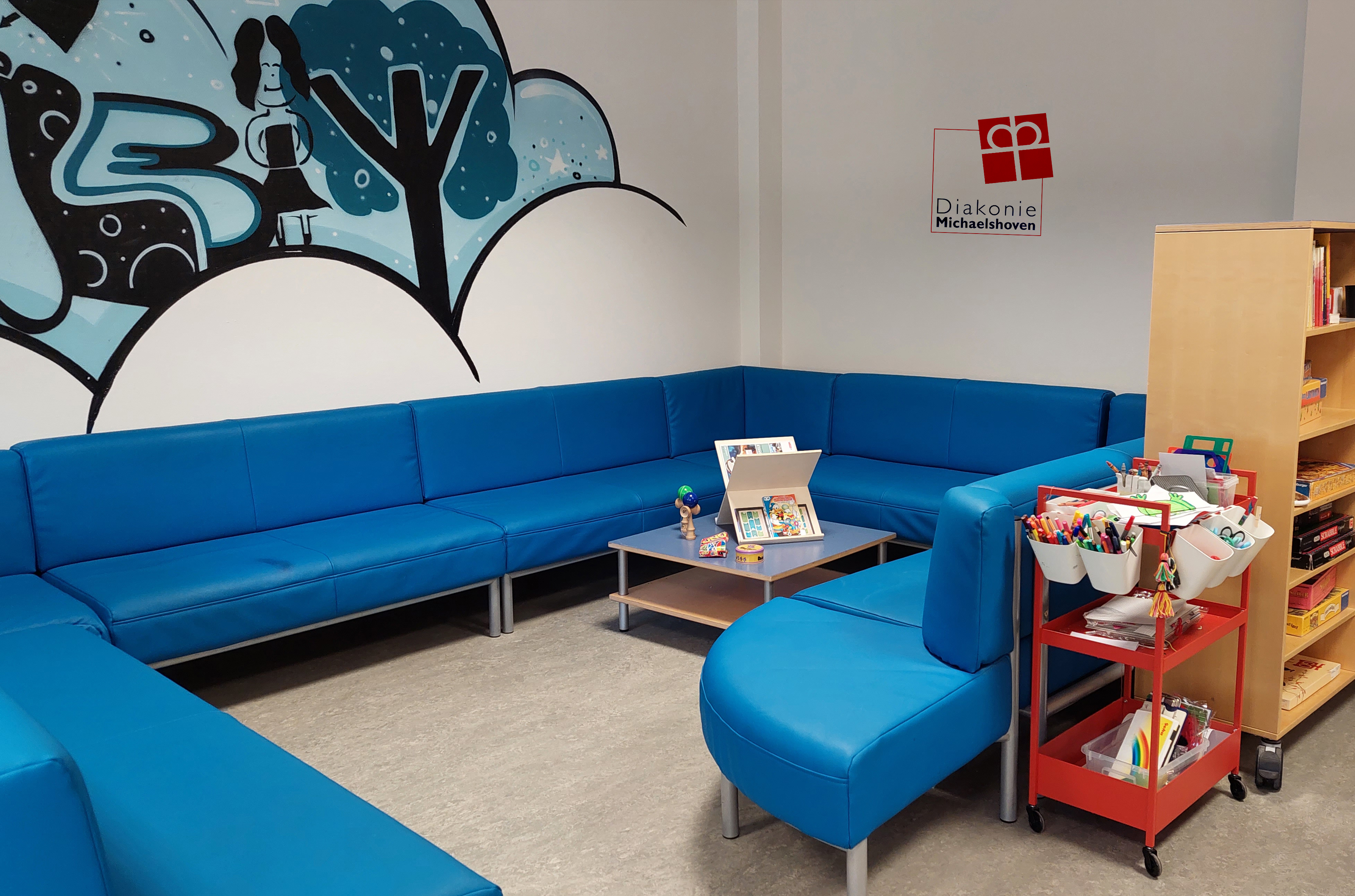 Im den Räumlichkeiten des Ganztagscontainers laden Sofas zum Chillen ein.